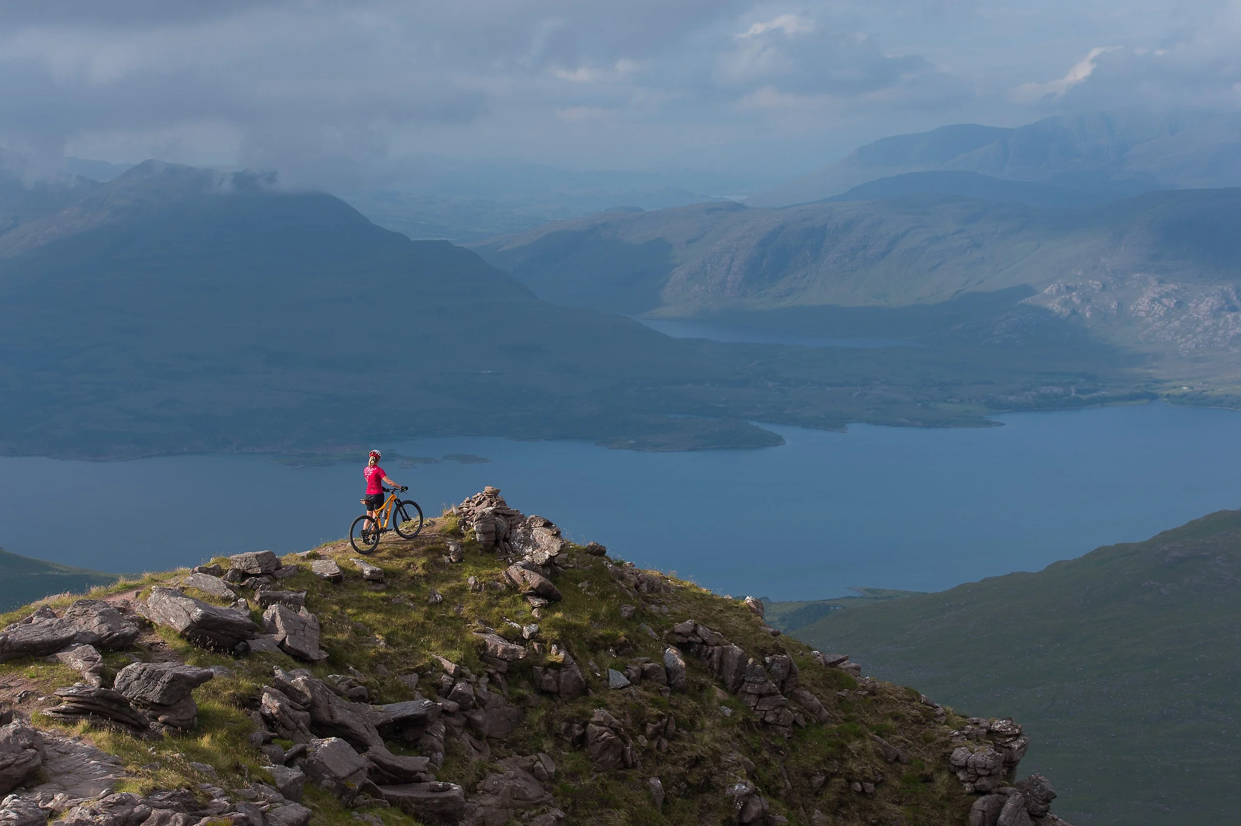 Gore-sponsored endurance athlete Naomi Freireich mountain biking on Beinn Alligin, a Munro in the North-West Highlands of Scotland